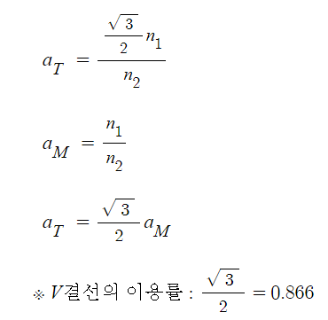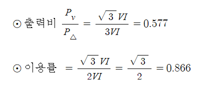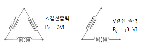 3상 전력을 공급한다. △ 결선의 공급전력은 3 VI이고 V결선의 공급전력은