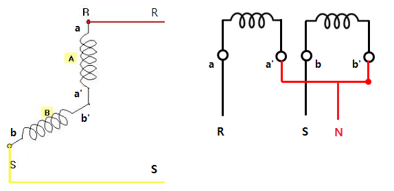 단상변압기를 통해 전력공급 방식은 다음과 같다.