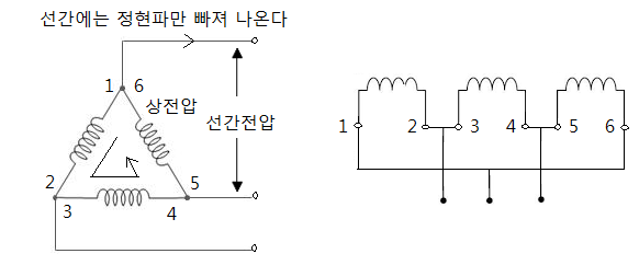 △결선 방식과 같으나 한상이 제거 된 것이다.
