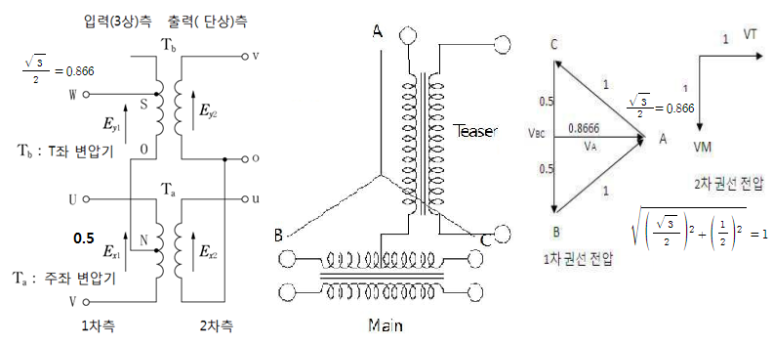 ⊙ 아래 그림을 보며 스코트결선 T좌 결선에 대하여 알아 보자.