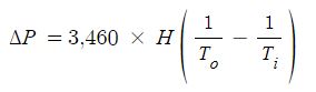 여기서, △P : 압력차, H : 높이, To : 밖의 절대온도, Ti : 내부의 절대온도