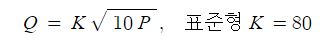 방사량 Q = 표면적 (바닥부분 제외) × 표준방사량 [㎡] × 10 ℓ/min · ㎡