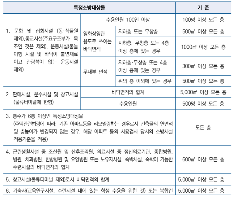 1) 설치대상 (소방시설 설치 및 관리에 관한 법률 시행령 [별표 4])