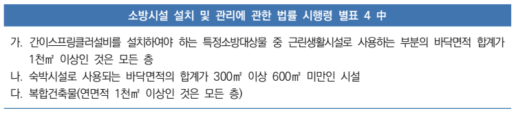 간이스프링클러설비 설치대상