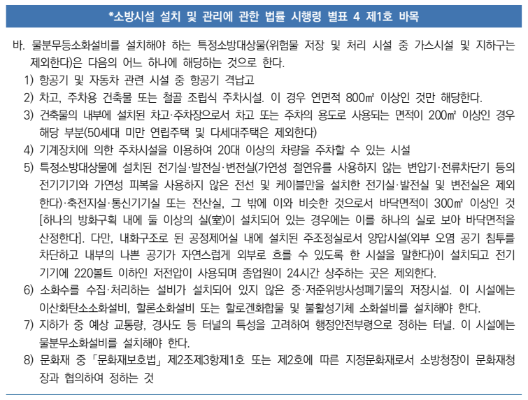 1) 설치대상 (소방시설 설치 및 관리에 관한 법률 시행령 [별표 4])