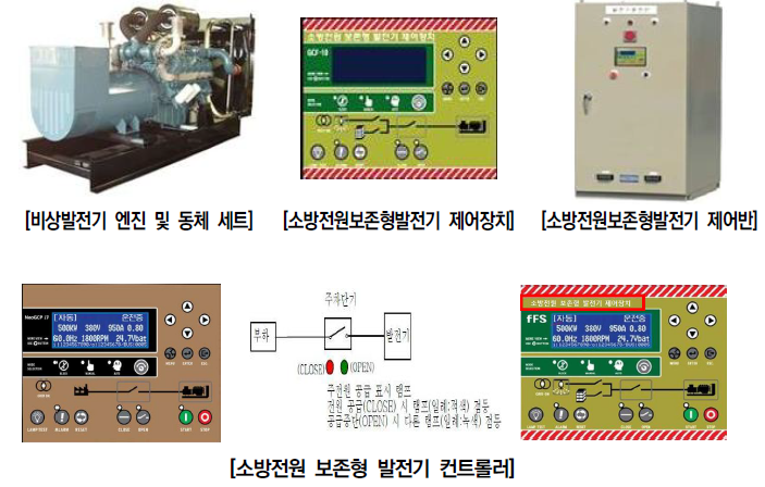 ● 소방전원보존형발전기는 이를 식별할 수 있는 표지 설치 여부