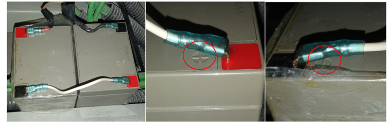 위 그림과 같이 ASS 제어함용 배터리에는 극성이 표기되어 있다.