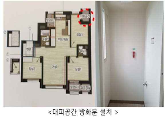 - 대피공간 방화문 (60분, 60분+) 설치여부 및 공간내부 확인