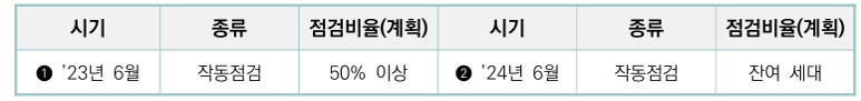 점검을 완료하지 못한 경우 다음 점검 (2023년 12월 작동점검)으로 이월