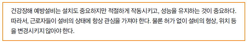 ▣ 건강에 영향을 미칠 수 있는 설비나 기계에는 건강장해 예방을 위한 조치를 해야 한다.