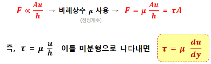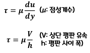 위에서 전단응력 τ 에 대한 관계식이 뉴턴의 점성법칙인데,