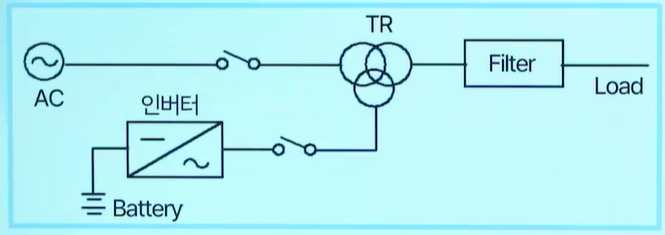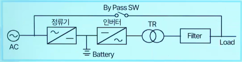 - 평상시 : 인버터를 통해 충전을 하면서 부하에 전원 공급
