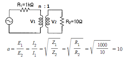 문제 14. 전원측 저항 1[kΩ], 부하 저항 10[Ω] 일 때 이것에 변압기 n : 1 의 이상변압기를