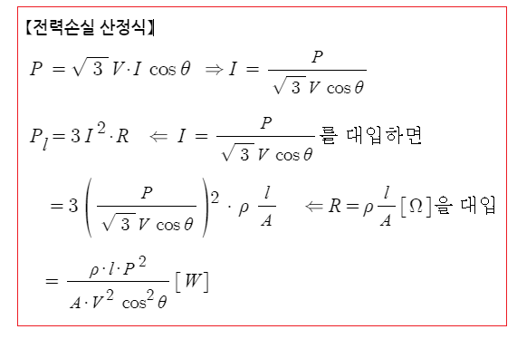 송전선의 전력손실의 산정할 때는 위 기본식을 변형하여 사용한다.