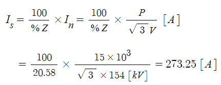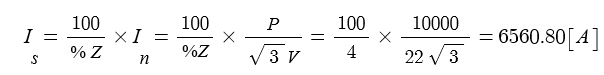 ※ 발전기에서 본 단락전류를 계산하므로 정격전류를 구할 때 전압은 발전기의