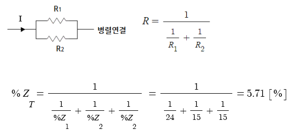 ③ 고장점을 기준으로 앞쪽으로 %Z를 합성한다. (직렬, 병렬을 고려하여 합산)