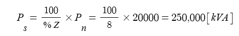되었을 때 단락용량은 몇 [kVA]인가 ?