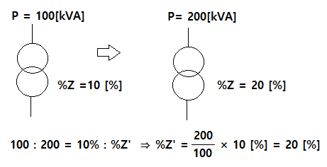 ② %Z(퍼센트 임피던스) 환산 : 기준용량에 맞게 다른 용량의 %Z를 환산한다.