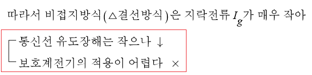 비접지 방식의 경우에는 지락전류 Ig가 매우 작아 계전기의 동작이 어렵고 결국 차단기가