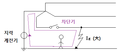 이를 방지하기 위해 지락계전기를 설치하여 차단기가 동작하게 하고 있는데