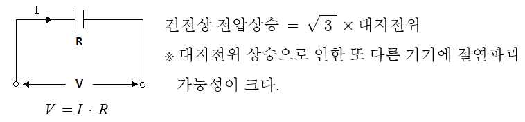 ※ 지락이 발생하지 않았을 때는 대지와 선간에 전류가 흐르지 않으므로 전위가 잡히지 않