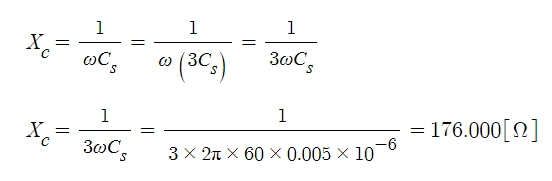 전선과 대지간의 정전용량으로 인해 전선과 대지간의 저항을 구해보면