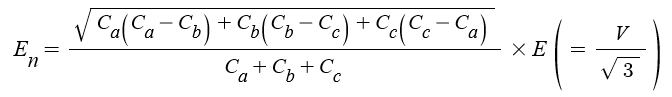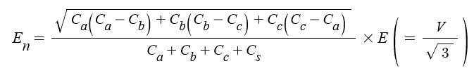 즉 Ca = Cb = Cc 이면 분모가 영("0")이 되어 정전유도전압을 영("0")을 만들 수 있다.
