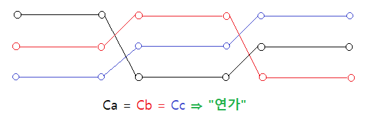 ▣ 전력선과 통신선 그리고 대지사이의 정전용량을 등가변환하면 정전용량을 직렬연결로