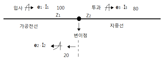 다른 점 즉 변이점에서 일부는 반사하고 나머지는 변이점을 투과하여 다른 회로에