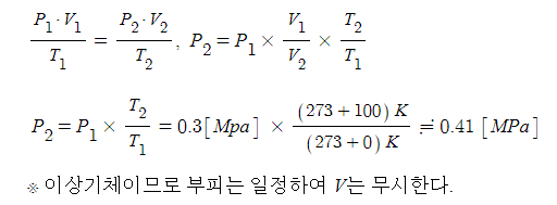 3. 위험물 탱크에 압력이 0.3[Mpa]이고, 온도가 0[℃]인 가스가 들어 있을 때 화재로 인하