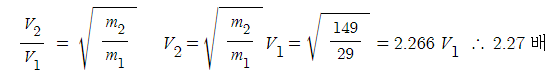▣ 같은 온도에서 기체 분자의 운동에너지는 일정하다. 그래서 가벼운 분자는 빨리 움직이