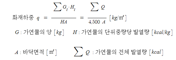 Energy Density)로 정의되나 일반적으로 화재하중 하면 화재하중 밀도를 말한다.
