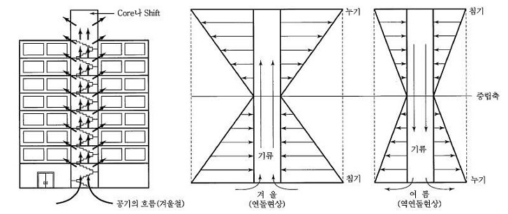 차)의 발생은 기류 이동의 원인이 되며, 고층일 수록 연돌효과가 크게 나타난다.