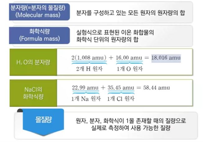 위의 내용은 원자의 질량비를 나타낸 것이다.