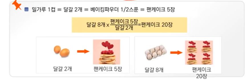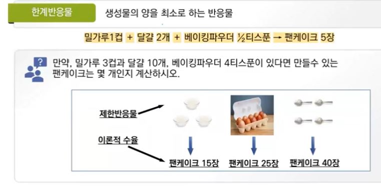 ※ 위 그림에서 밀가루는 만들 수 있는 팬케이크의 수를 제한한다. 만약 이것이 화학반응