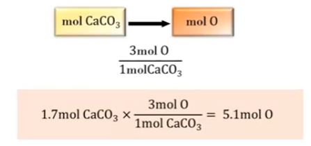 예제 4) 1.7 [mol] CaCO3 속에 있는 O의 몰수를 결정하시오.