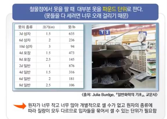 즉, 화학에서 원자를 [g] 수를 알면 그 속에 들어 있는 원자 개수를 알게 되었다.