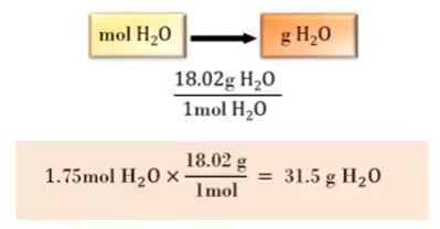 예제 3) 물 1.75[mol]에 해당하는 질량을 그램 단위로 계산하시오 (물의 몰질량 18.02 [g/mol])