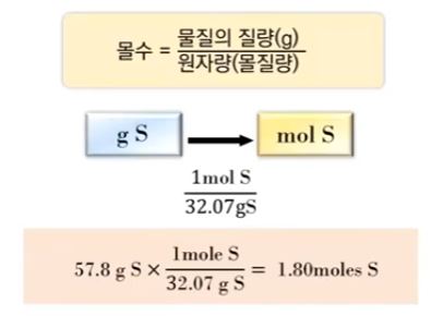 예제1) 57.8 [g] 황의 몰수를 계산하시오. (황의 몰질량 32.07[g/mol])