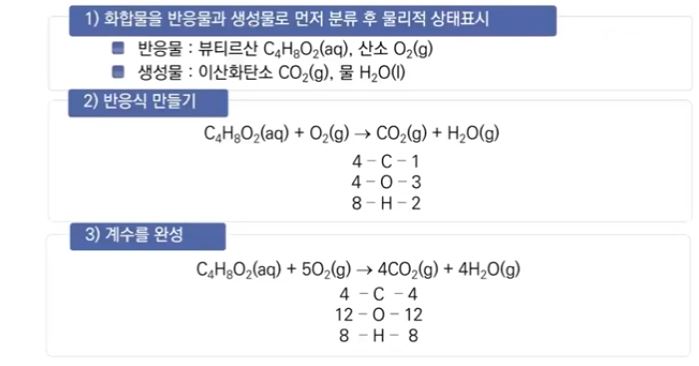 뷰티르산이 체내에서 대사될 때의 균형 잡힌 반응식을 쓰시오.