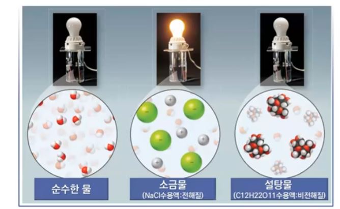 설탕물은 물에 녹기만 하는 것이라서 전기가 통하지 않는다.