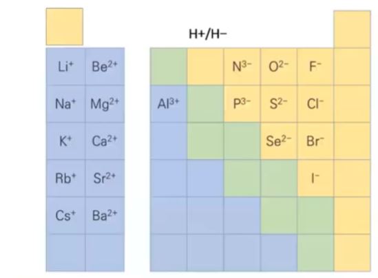 왼쪽에 있는 원소들은 전자를 버릴려는 성향이 있으므로 이들 원소를 만나면 마이너스 (-) 이온이 된다.
