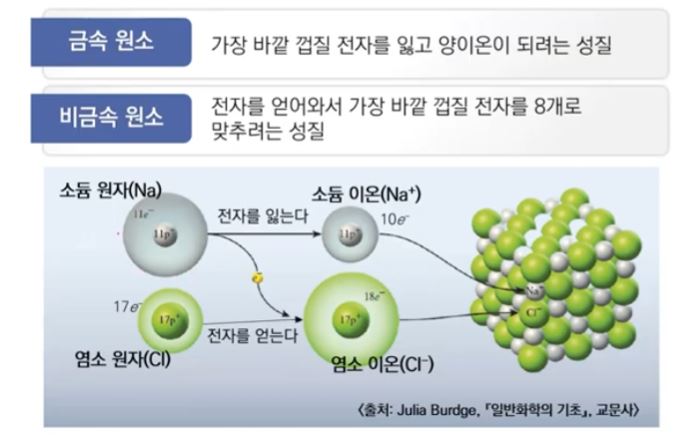 ※ 대부분 금속이 양이온이 되고 비금속이 음이온이 되는 이유는 원자가 갖고 있는 최외각