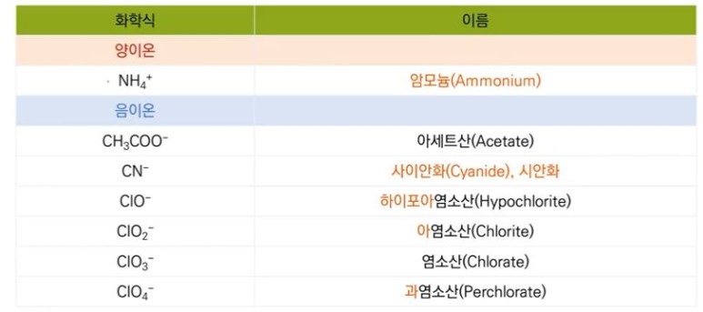 나. 중요한 다원자 이온의 이름