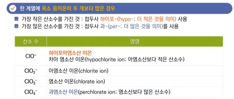 다. 다양한 산소산 음이온 (옥소 음이온)이 있는 계열의 명명법