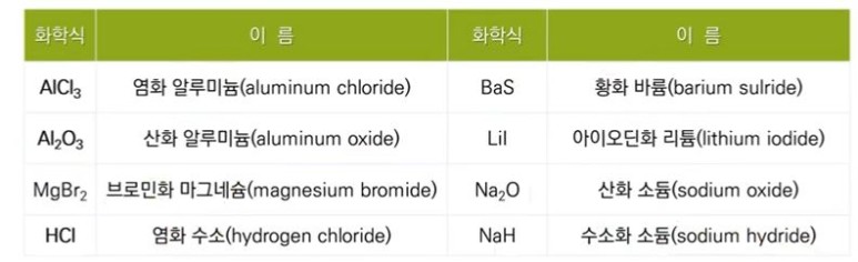 ※ 이온 결합 물질은 분자로 떼어 낼 수 없으므로 화학식으로 표기한다.