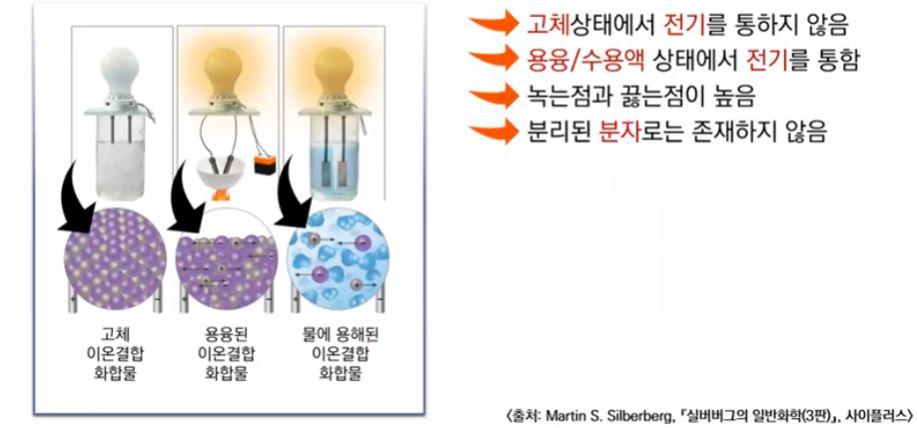 과정이 필요하다. 이렇게 만든 액체 상태를 용융상태의 이온결합 물질이라고 한다.