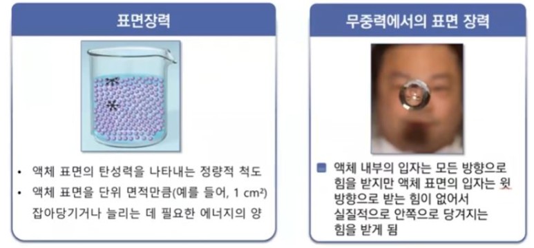 는데 이 결과 무중력인 상태에서 물 한방울을 딱 떨어 뜨리면 오른 쪽 그림과 같이