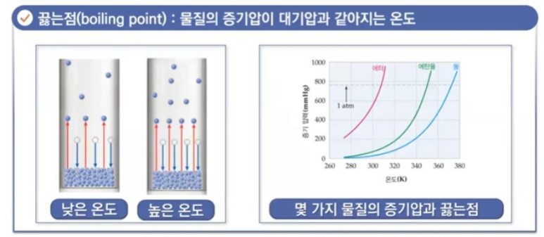 하여 기체(기포)가 액체 내부에서 외부로 나오는 온도가 되는데 이 온도를 "끓는 점"이
