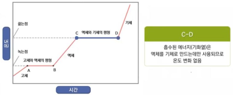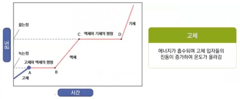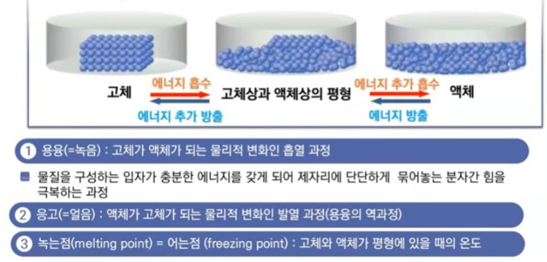 변화, 흡열과정이다. 고체가 에너지를 흡수하면 고체와 액체 상의 평형인 0[℃]의 온도